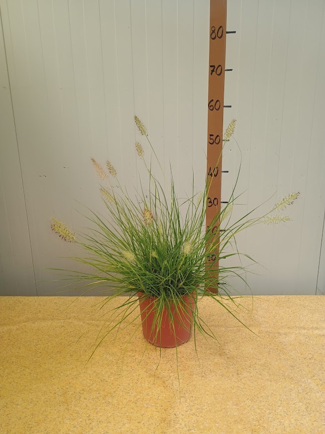 Note: penniseto dal bel portamento, che forma un bel cespuglio ricadente con foglie dorate in inverno che diventano verde lime in estate. Fioritura con numerosi scovolini dal verde chiaro al beige in estate. Portamento cespuglioso e amante del terreno ben drenato. Molto luminosa!